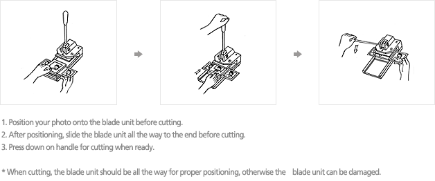 | The press cutter is a die-cutting device, which punches out various materials, such as photographic prints, laminations, polaroid pictures and rubber sheets, in the desired shape and size.